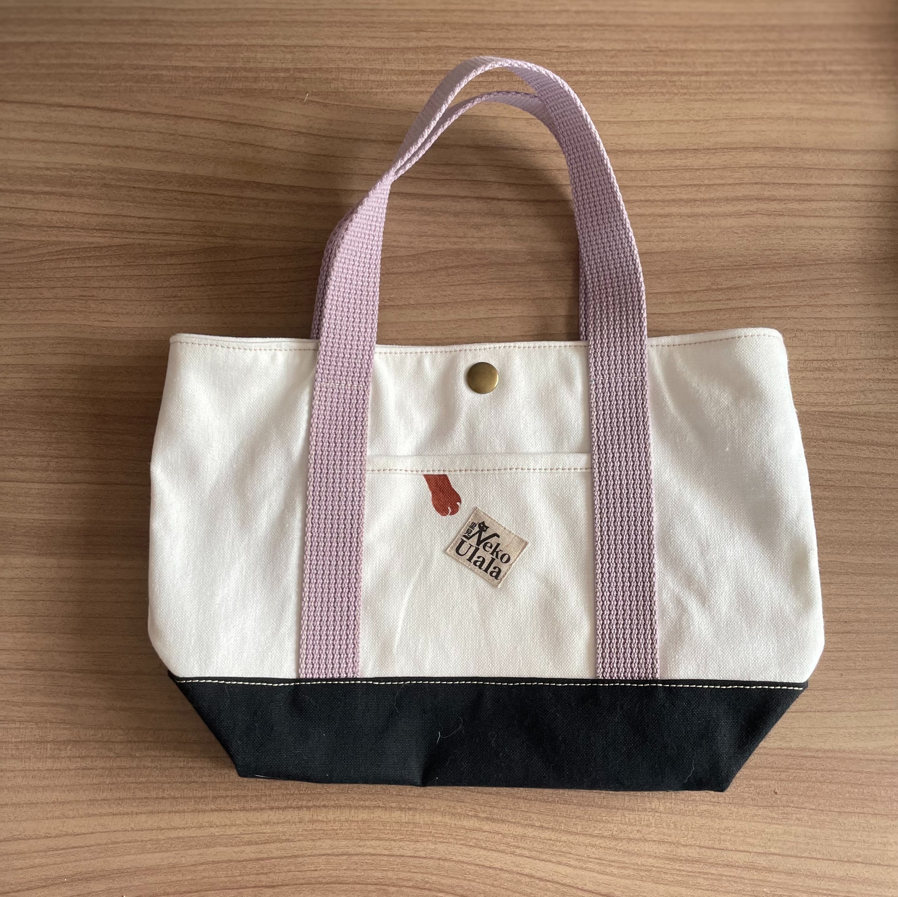 こちらのトートバッグは、猫うららのオリジナルロゴが施された特別なアイテムです。全て1点ものなので、世界に一つだけのトートバッグをお楽しみいただけます。