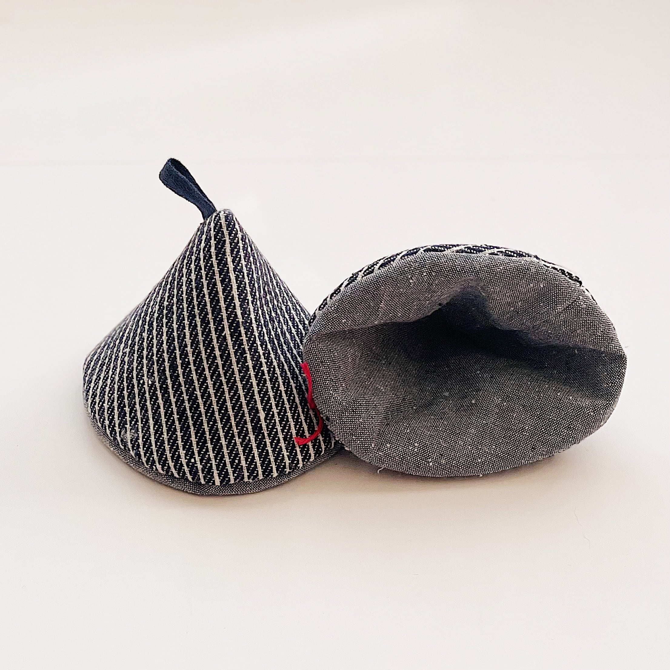 鍋つかみは、円柱型のデザインで、ストウブやル・クルーゼなどのお鍋にぴったりです。